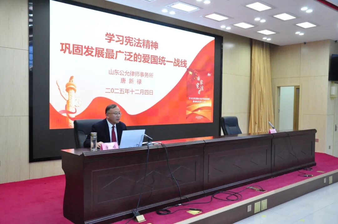 2025年12月4日是第十二个国家宪法日,我所唐新禄律师应邀前往中共泰安市委统战部,开展了一场内容详实、深入浅出的宪法专题授课。